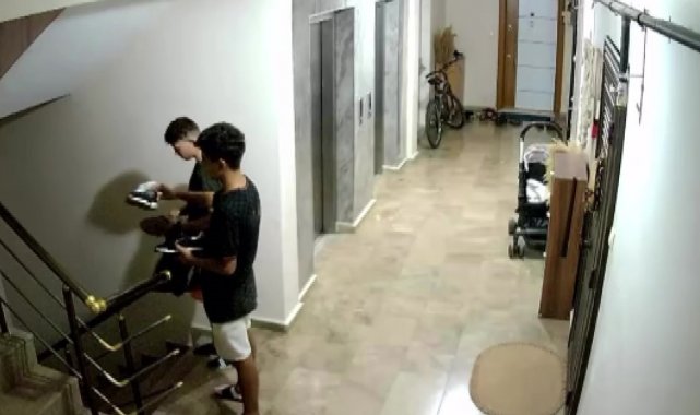 Olay, Yüreğir ilçesine bağlı Kiremithane Mahallesi'ndeki bir apartmanda meydana geldi. Kimlikleri tespit edilemeyen 2 genç, bir apartmana girdi. Evin önündeki ayakkabıları gören şahıslar, göbek attı. Ardından gençler ayakkabıları inceledikten sonra alıp kaçtı. Bu anlar ise anbean güvenlik kamerasına yansıdı.