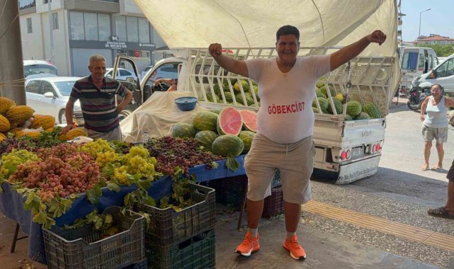 Sosyal medya sayfasında karpuz tezgahında, tarlalarda ve sahillerde göbek attığı videoları paylaşan 24 yaşındaki Ramazan Vural Gün, Manavgat pazarlarında da karpuz satarken göbek atarak dikkatleri üzerine çekiyor.