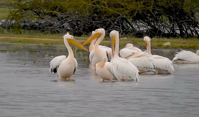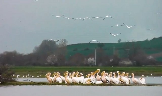 Göç eden pelikanlar Bursa'da mola verdi