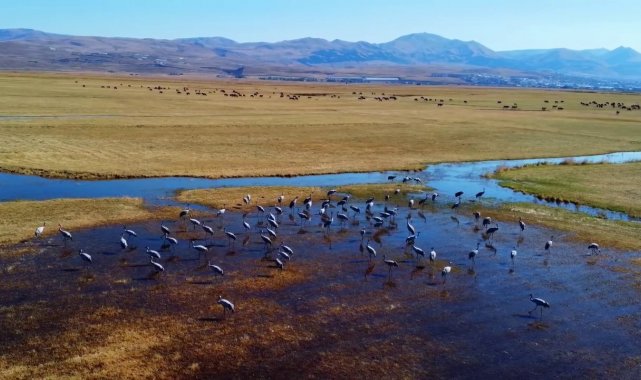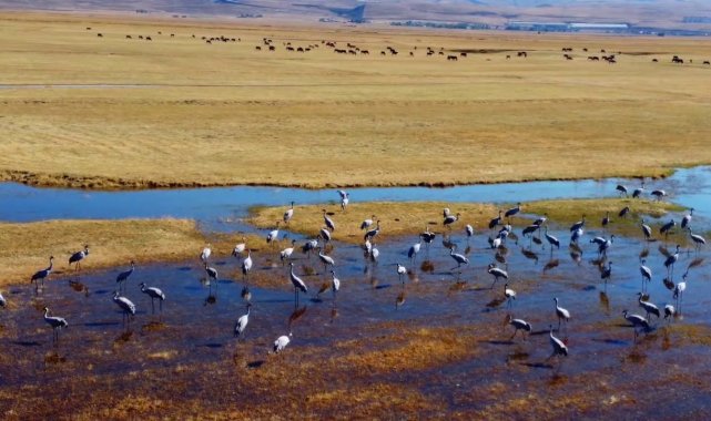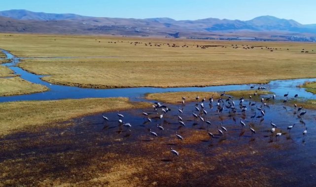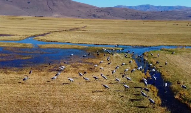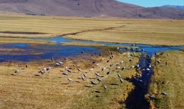 Doğa Koruma Milli Parklar 13. Bölge Müdürlüğü ekipleri tarafından göç sırasında Erzurum'da mola veren turnalar görüntülendi.