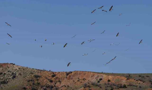 İlkbaharın gelmesiyle birlikte uzun göç yolculuğunu tamamlayan leylekler, Kırıkkale semalarında sürü halinde görülmeye başladı. Martılarla birlikte aynı alanda uyum içinde hareket eden leylekler, ilgi çekici görüntüler oluşturdu.