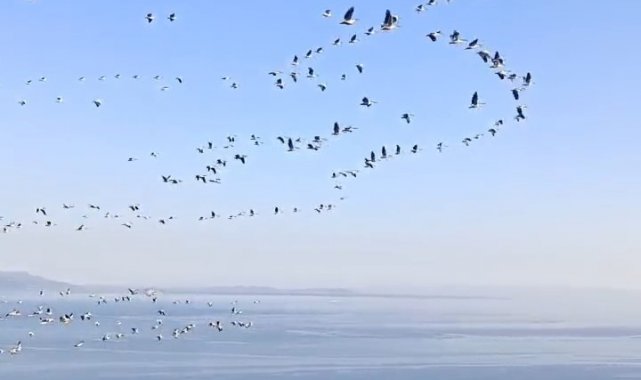 Göç yolundaki pelikanlar mest etti: Gökyüzünden muhteşem görüntüler