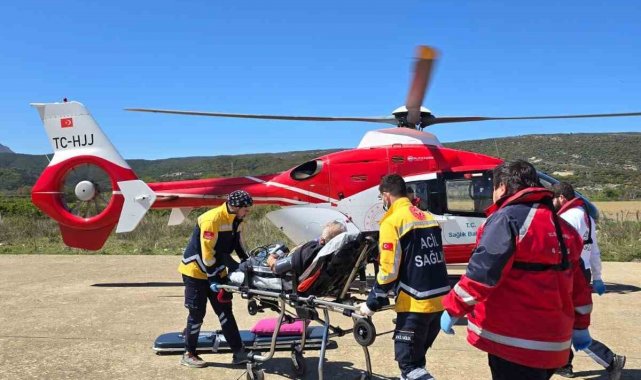 Gökçeada'da kalp krizi geçiren hasta ambulans helikopter ile Çanakkale'ye getirildi