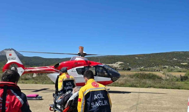 Çanakkale'nin Kuzey Ege Denizi'ndeki Gökçeada ilçesinde kalp krizi geçiren hasta ambulans helikopter ile Çanakkale'ye getirilerek hastanede tedavi altına alındı.
