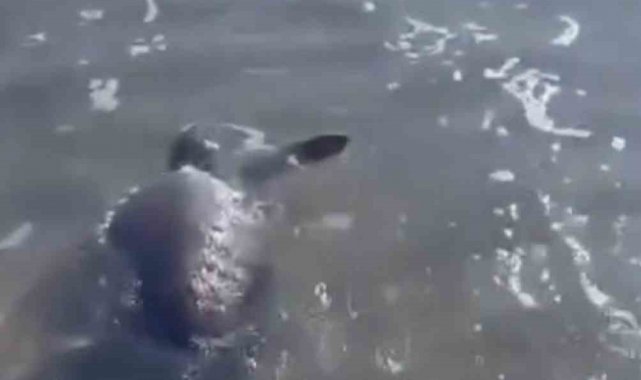 Çanakkale'nin Gökçeada ilçesinde sahile vuran caretta caretta duyarlı vatandaşlar sayesinde denize tekrar kavuştu.