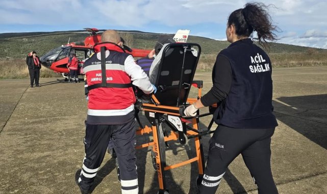 Gökçeada'da rahatsızlanan hasta helikopter ambulansla Çanakkale'ye sevk edildi