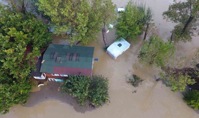 Çanakkale'nin Gökçeada ilçesinde gece boyu etkili olan kuvvetli sağanak yağış, sele neden oldu. Yaşanan selde bazı evler, iş yerleri, tarım arazileri sular altında kalırken köy yolunda oluşan toprak kaymasıyla yol kapandı. Yaşanan sel nedeniyle oluşan tahribat dron ile görüntülendi.