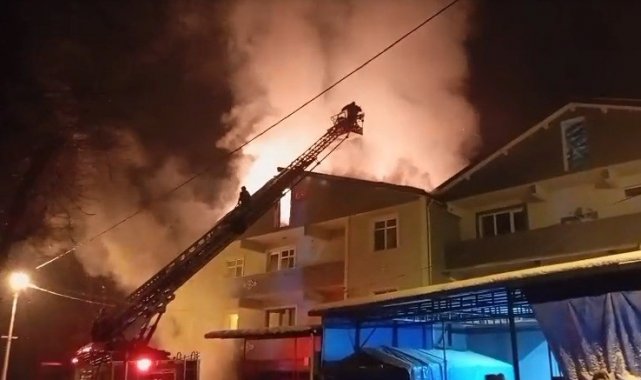 Zonguldak'ın Gökçebey ilçesinde 3 katlı binanın çatı katı, çıkan yangında büyük hasar gördü.