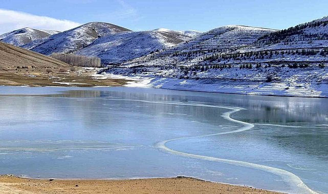 Öte yandan göletin etrafını saran ve karla kaplanan dağlar, ortaya çıkan manzaraya ayrı bir güzellik katıyor. Beyaz örtüye bürünen ağaçlar, buz tutan gölet ile birlikte doğal bir görüntü oluşturuyor.