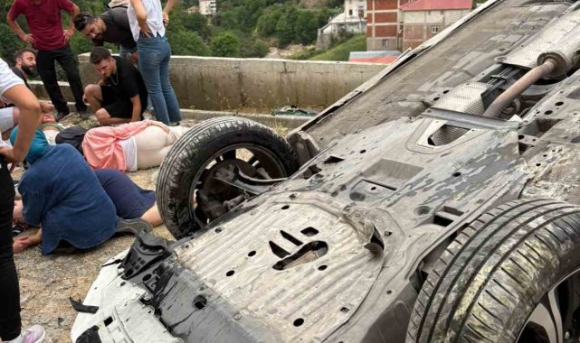 Giresun'un Dereli ilçesinde yer alan Göksu travertenlerinde otoparktan yürüyüş yoluna düşen otomobildeki 4 kişi yaralandı.