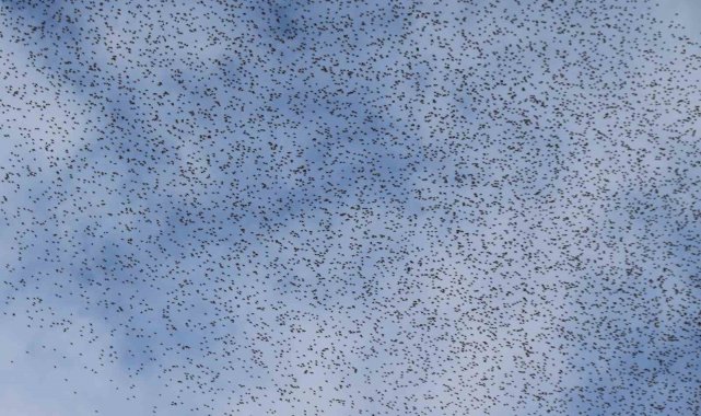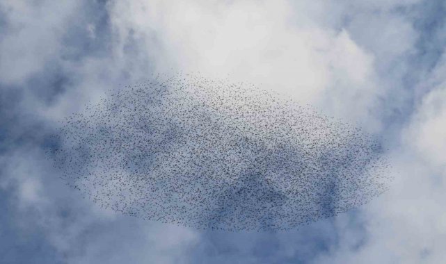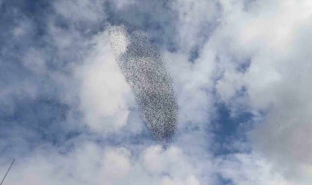 Gökyüzünde kuş sürüsünün hayran bırakan şöleni