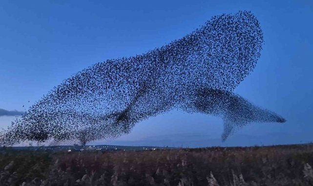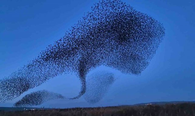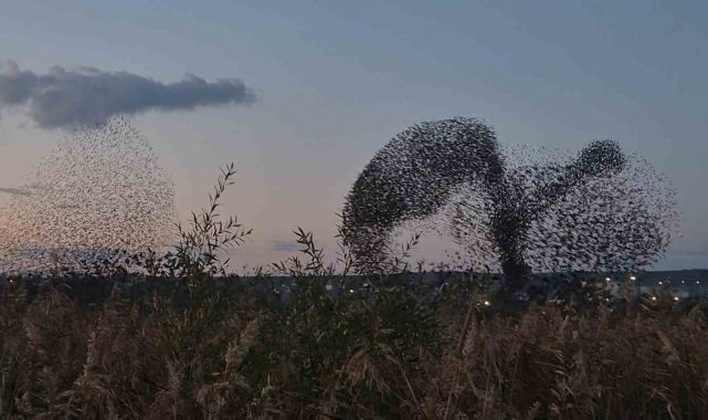 Tekirdağ Süleymanpaşa'da akşam saatlerinde yüz binlerce sığırcığın gökyüzünde oluşturduğu senkronize uçuş izleyenlere muhteşem anlar yaşattı.