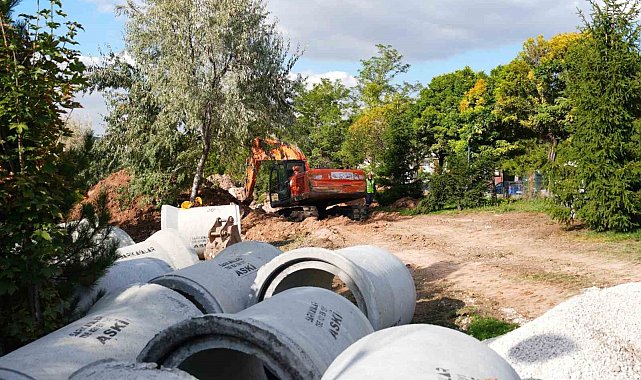 Gölbaşı Belediyesi, yağmur yağdığında göle dönen Alparslan Türkeş Parkı bölgesinde alt yapı çalışması başlattı.