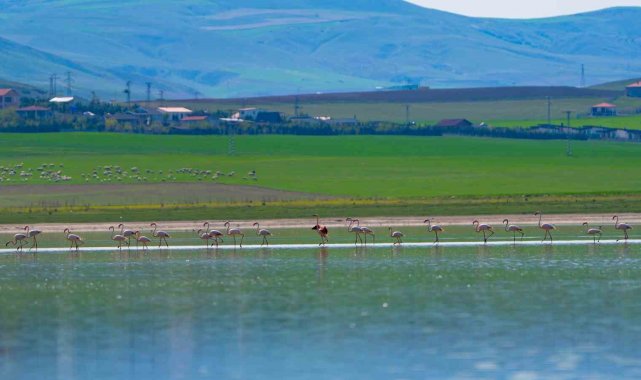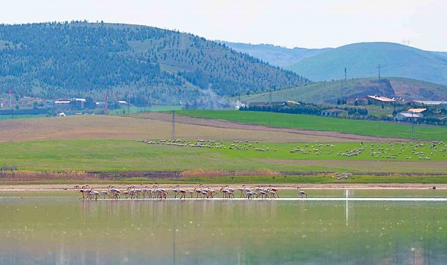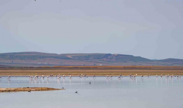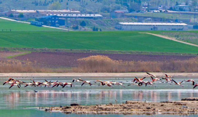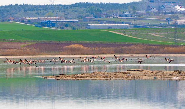Doğal oluşumları ve sulak alanlarıyla birçok yaban hayvanına ev sahipliği yapan Gölbaşı, bu yıl da flamingoların göç yolunda uğrak noktası oldu.