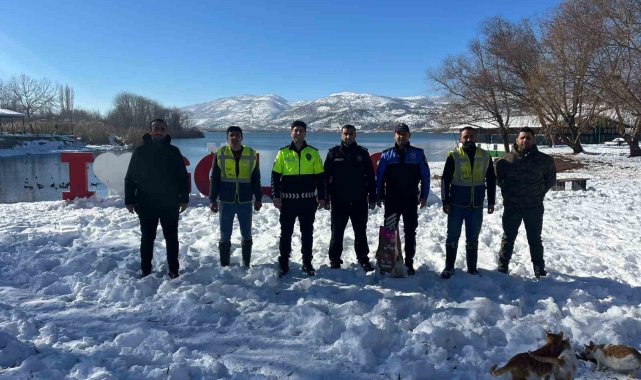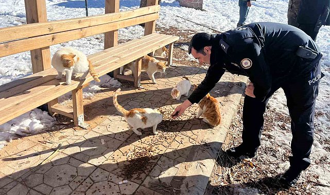 Adıyaman'ın Gölbaşı ilçe Emniyet Müdürlüğü ekipleri, sokak hayvanları için mama ve yem bıraktı.