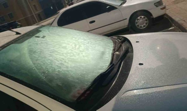 Adıyaman'ın Gölbaşı ilçesinde hava sıcaklıklarının mevsim normallerinin altında seyretmesi araçların camlarının buzla kapladı.