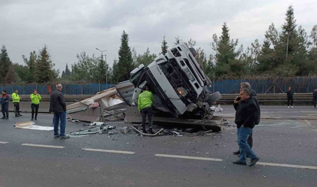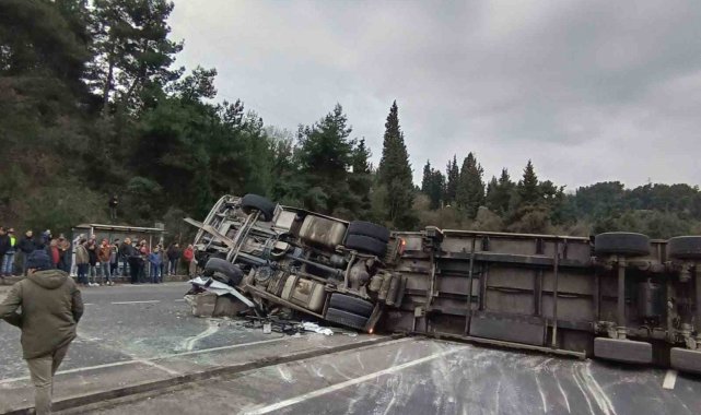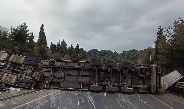Kocaeli'nin Gölcük ilçesinde kontrolden çıkarak devrilen tırın sürücüsü yaralandı. Trafiğe kapanan yol yaklaşık 3,5 saatlik çalışmayla açıldı.