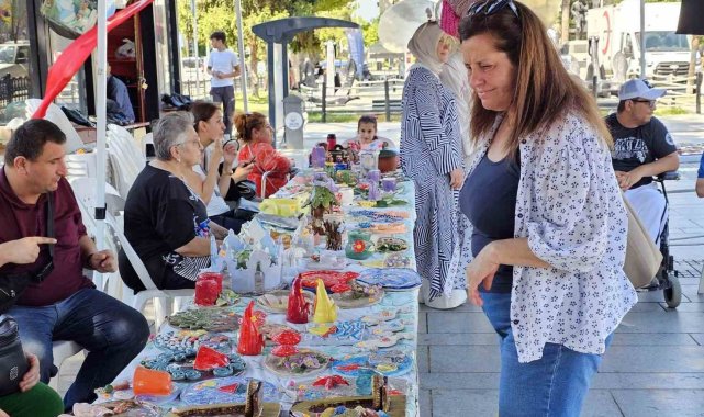 Gölcük Belediyesi Engelsiz Yaşam Merkezi'ndeki kurslarda eğitim gören özel bireyler, el emeği ürünlerini Anıtpark'ta açılan sergide ziyaretçilerin beğenisine sundu.