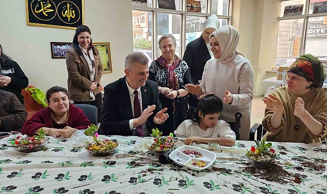 Etkinliğe katılarak kursiyerlerle bir araya gelen Gölcük Belediye Başkanı Ali Yıldırım Sezer, engelli bireylerle sohbet ederek onların sanatsal çalışmalarına eşlik etti.