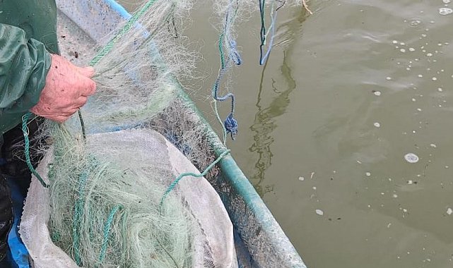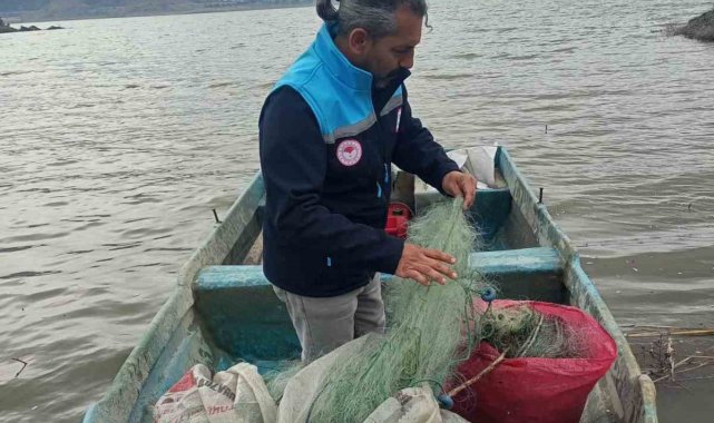 Çorum'un Kargı ilçesinde ekipler tarafından yapılan denetimde göl içinde 800 metre uzunluğunda kaçak balık ağı ele geçirildi.