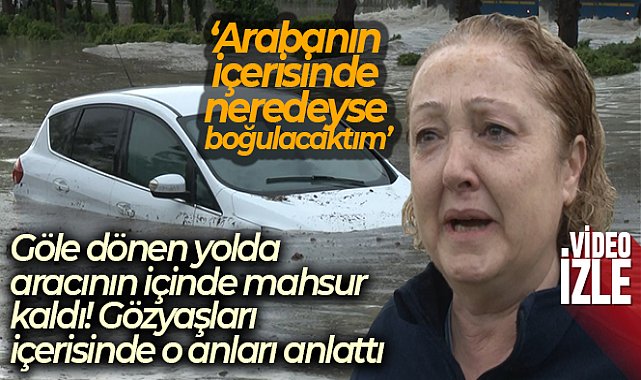 Göle dönen yolda arabasının içinde mahsur kalan kadın gözyaşlarına tutamadı