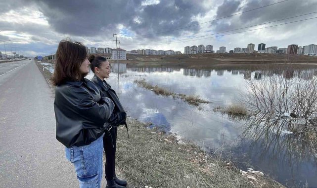 Son yıllarda kuraklıkla yüzleşen Sivas'ta birçok göl kurumuştu, şimdi ise yağan kararın erimesiyle tarım arazileri göle döndü.