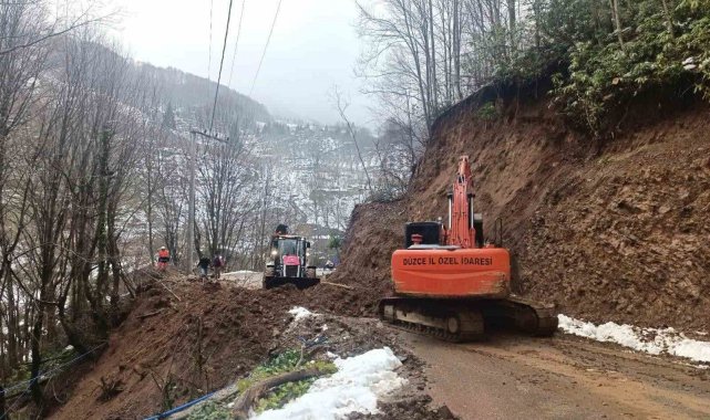 DÜZCE(İHA) – Düzce'nin Gölyaka ilçesi Çamlıbel köyünde heyelan meydana geldi. Ekiplerin müdahalesi ile yol tekrar trafiğe açıldı.