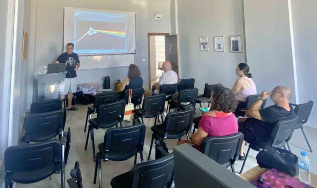 Atölyeyi yöneten Bülent Şelli, katılımcılarla sualtı görüntülemede ışığın farklılığa etkisi üzerine deneyimlerini paylaştı.