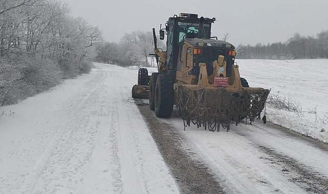 Balıkesir'in Gönen ilçesine bağlı kırsal mahallelerde kar yağışı etkisini gösterirken, Balıkesir Büyükşehir Belediyesi ekipleri yol açma ve tuzlama çalışmalarına aralıksız devam ediyor.