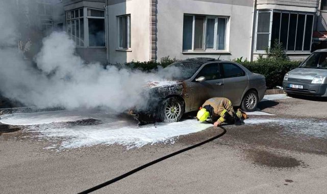 Yangında araçta maddi hasar meydana gelirken, olayla ilgili inceleme başlatıldı.