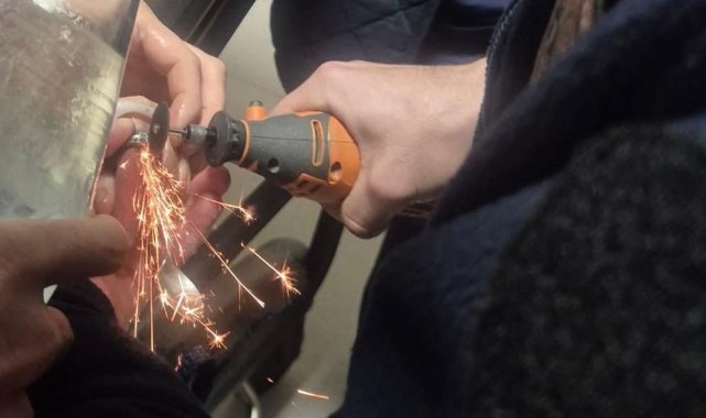 İhbar üzerine harekete geçen Balıkesir Büyükşehir Belediyesi Gönen İtfaiye Grup Amirliği ekipleri, özel ekipman kullanarak yüzüğü dikkatli bir şekilde kesip çıkardı.