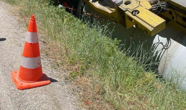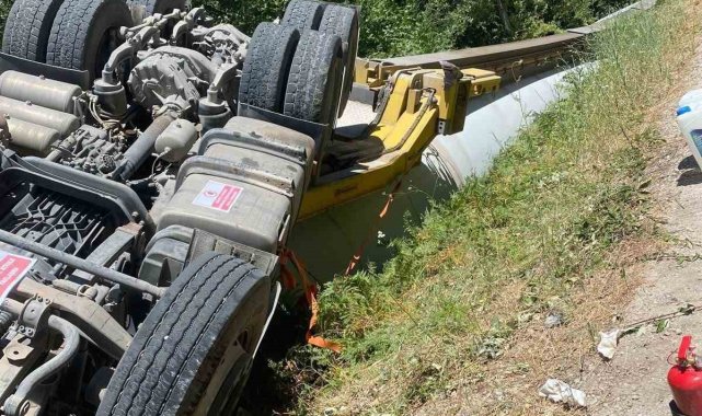 Gönen'de rüzgar türbini kanadı taşıyan tır devrildi: Sürücü hafif yaralandı