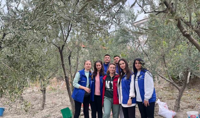 Gün boyu tarlada çalışmalara destek olan gönüllü öğrenciler, zeytin toplamanın zorluklarını da tecrübe etmiş oldu.