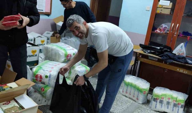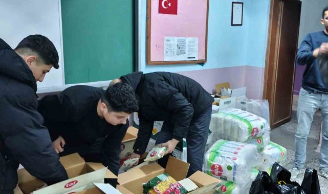 Manisa'nın Gördes ilçesindeki Güneşli Anadolu Lisesi'nde öğretmen, öğrenci ve esnafın katkılarıyla hazırlanan Ramazan kolileri, Balıkesir'in Sındırgı ilçesinde yaşayan depremzede ailelere ulaştırıldı.