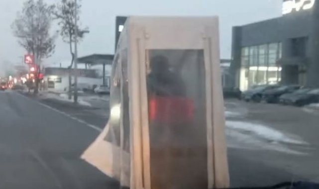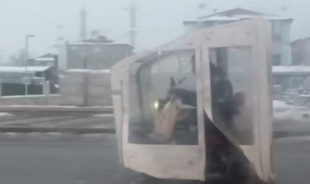 Malatya'da elektrikli motosikletini gardırobu andıran brandalarla kaplayan sürücü, görenleri şaşkına çevirdi. İlginç görüntüler, Yeşilçam klasiği Sakar Şakir filmindeki "yürüyen dolap" sahnesini akıllara getirdi. Olay, akşam saatlerinde Malatya-Ankara karayolu Şehirler Arası Otobüs Terminali (MAŞTİ) mevkiinde meydana geldi. Edinilen bilgilere göre, Ankara istikametine seyir halinde olan bir sürücünün elektrikli motosikletini tamamen kapatan ve dolabı andıran brandalarla yolculuk yaptığı görüldü. Yoldan geçen vatandaşların cep telefonlarıyla kaydettiği olayda sürücü, çevredeki şaşkın bakışlara aldırış etmeden yoluna devam ederken, ortaya çıkan manzara izleyenlere Sakar Şakir filmindeki "yürüyen dolap" sahnesini hatırlattı.