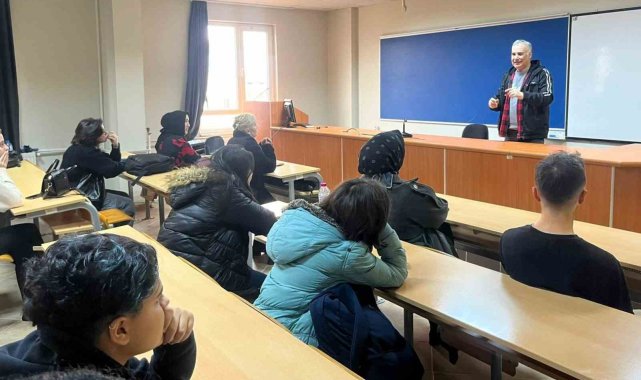 Sakarya Uygulamalı Bilimler Üniversitesi (SUBÜ) Bilişim Teknolojileri Meslek Yüksekokulunda düzenlenen etkinlikte, görme engelli Savaş Saygılı, yaşam deneyimlerini ve karşılaştığı zorlukları öğrencilerle paylaştı.