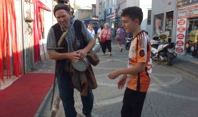 Burhaniye ilçesinde, görme engelli Mustafa Kürcen, 50 yıldır darbuka çalıp türkü söyleyerek geçimini sağlıyor. İvrindi'nin kırsal Kocaoba Mahallesinden gelen 73 yaşındaki Kürcen, çalıp söylerken bazı vatandaşlarda, oyunları ile ona eşlik ediyorlar.