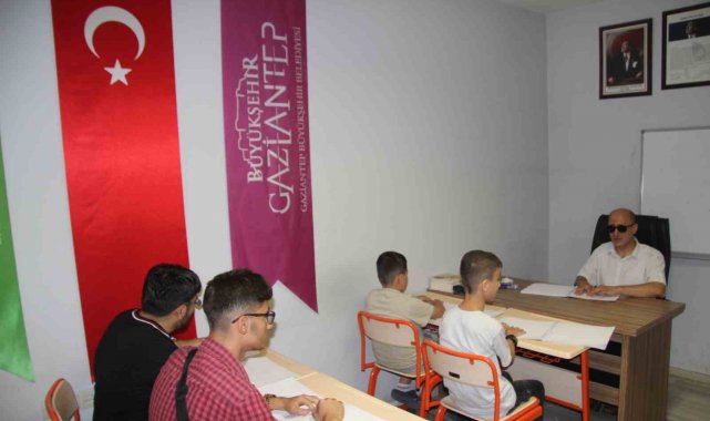 Kendisi gibi görme engelli olan öğrencilere Braille alfabesiyle eğitim veren Kur'an-ı Kerim öğreticisi Mehmet Kurtoğlu, kursiyerlerin düzenli olarak devam eden kursa özveriyle devam ettiklerini söyledi. Kursiyerlerin verilen eğitimlere büyük bir istekle katıldığını anlatan Kurtoğlu, "Gaziantep Büyükşehir Belediye'mizin de katkısıyla arkadaşlarımızla beraber yaz döneminde Kur'an-ı Kerim kursu açtık. Görme engelli olmak elbette dinimizi öğrenmeye engel değil. Bunu da bu şekilde Kur'an-ı Kerim kursumuzla beraber birebir olarak deneyimlemiş oluyoruz. Yüce Kur'an'ımız bütün insanlığa indirilmiş bir kitaptır. Bütün Müslümanlar gerek okuma anlamında gerek mealini öğrenme anlamında Kur'an-ı Kerim'den kendi durumlarına göre istifade ediyorlar. Biz de görme engeller olarak elbette ki bundan kendi nasibimizi alacağız. Bunu da kendi yöntemlerimize göre yapıyoruz" dedi.