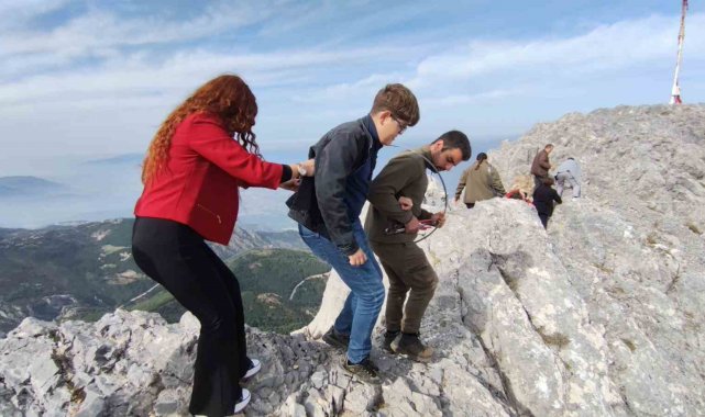 Manisa'da Cumhuriyet'in 102'nci yılı kutlamaları kapsamında görme engelliler, Spil Dağı zirvesinde gerçekleştirilen Türk bayrağı değişim törenine katılarak anlamlı bir etkinliğe imza attı.