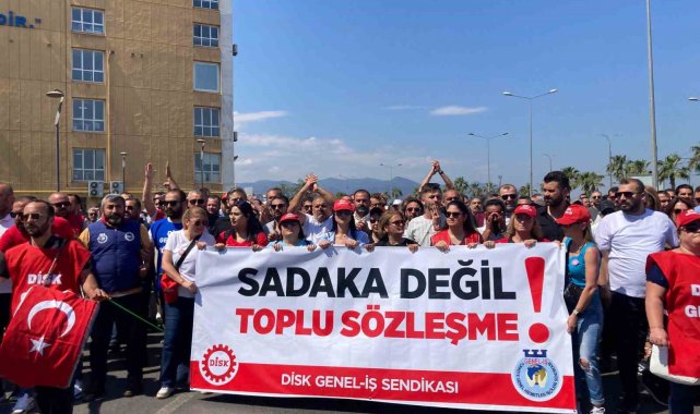 İzmir Büyükşehir Belediyesi ile DİSK Genel-İş arasında 23 bin çalışanı ilgilendiren toplu iş sözleşmesi görüşmelerinde uzlaşma çıkmaması üzerine dün başlayan grev sürüyor. Bu sabah düzenlenen dev yürüyüşe katılan binlerce işçi, sloganlar atarak seslerini duyurmaya çalıştı.