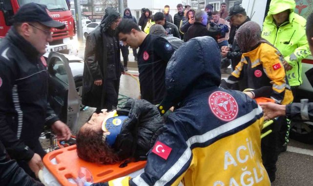 Otomobilde sıkışan kadın yarım saatlik operasyonla dışarı çıkarıldı