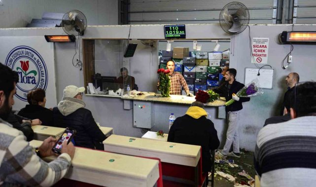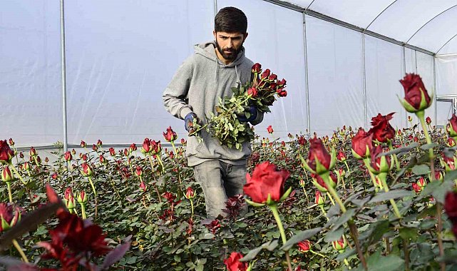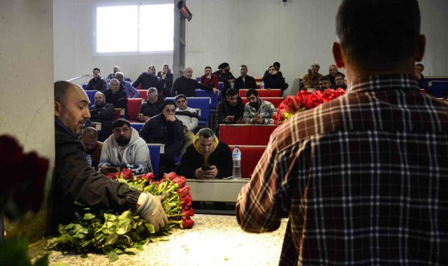 Soğuk kış günlerinde binbir zahmetle seralarda yetiştirilen kırmızı güller, yoğun mesainin ardından sevgililerin yüzünü güldürmeye hazırlanıyor. Sevgililer Günü öncesi Akdeniz ilçesindeki seralarda ihtiyaca karşılık vermek için tam kapasite çalışan üreticiler, 14 Şubat için gül mesaisini tamamladı. İlçeye bağlı Akdam Mahallesi'ndeki seralarda sabah erken saatlerde gül hasat eden işçiler, soğuk hava depolarında beklettikten sonra gülleri paketleyerek satışa hazır hale getiriyor. 14 Şubat öncesi üreticiler son hasatları yaparken, esnaf da tezgahlarında sergileyecekleri en güzel gül ve çiçekleri en uygun fiyata almak için mezatta adeta birbirleriyle yarıştı. Özellikle kırmızı güllerin rağbet gördüğü mezatta, esnaf kırmızı güllerin yanı sıra diğer çiçek ve süs bitkilerinden de satın aldı.