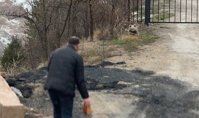Gümüşhane'de aç kalan yavru ayıyı elleriyle beslediler