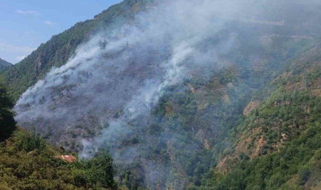 Gümüşhane'nin Kürtün ilçesinde ağaçlık alanda yangın çıktı. Ekiplerin müdahalesi sürüyor.
