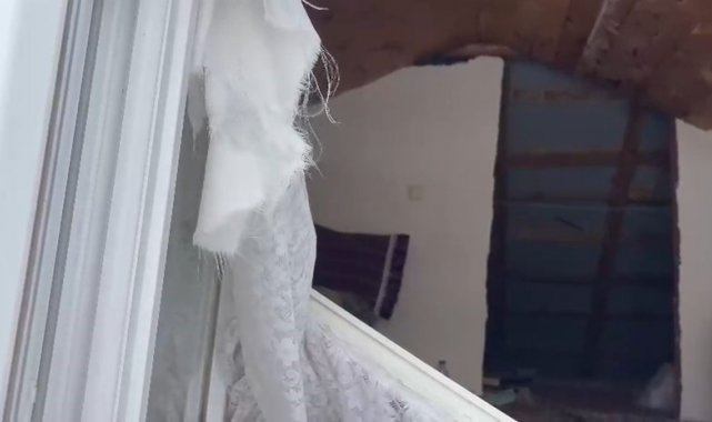 Cep telefonu kameralarına yansıyan görüntülerde, ayının kar üzerinde bıraktığı devasa pençe izlerinin doğrudan üst kat pencerelerine yöneldiği net bir şekilde görülüyor.