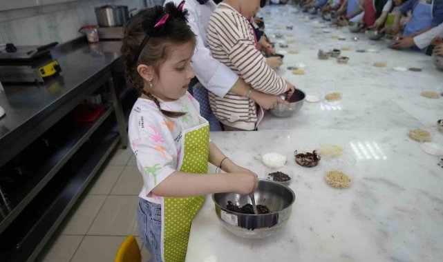 Asel Damla (6) ise, "İlk önce kurabiyeyi yapacağımız malzemeleri ekledik sonra da çikolata yaptık çok eğlendik" dedi.