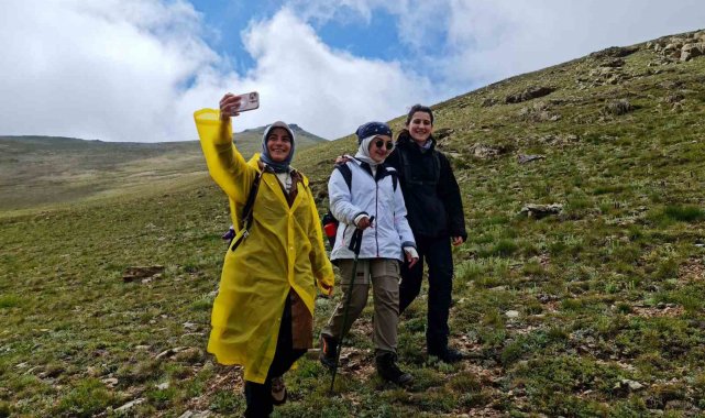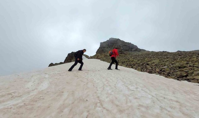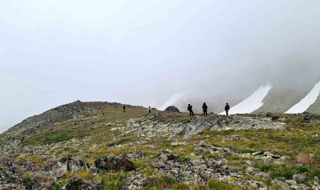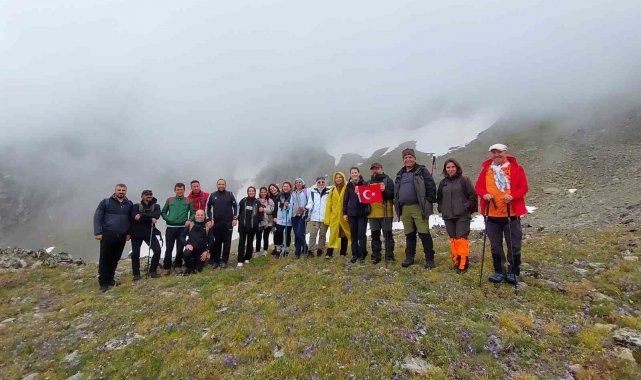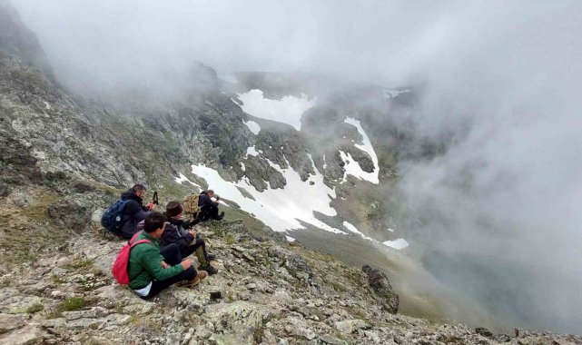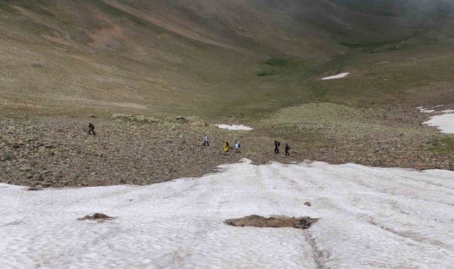 Torul ilçesine bağlı Gümüştuğ köyünün 2 bin 475 metre yüksekliğindeki Yılanlı Yaylası'na kadar araçlarla ulaşan 20 sporcu, buradan başlayan yürüyüşlerinde yaklaşık 3 bin metre rakıma kadar ilerledi.