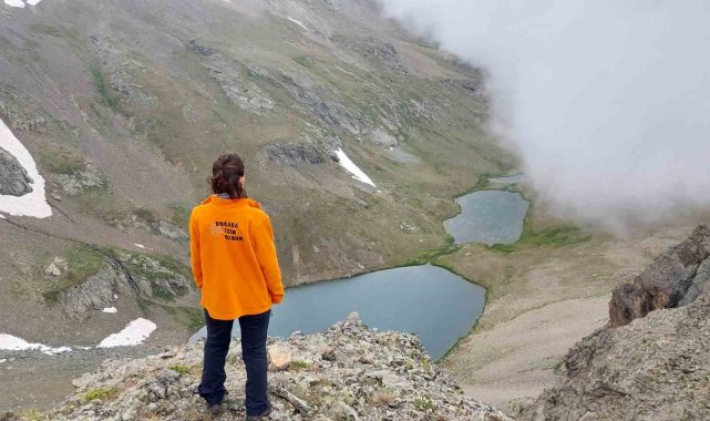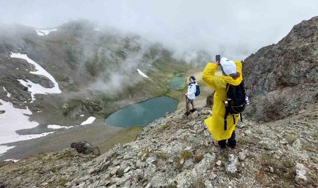 Yaklaşık 3 bin metre yükseklikten Acembol Gölleri'nin büyüleyici manzarasını sis perdesi altından izleyen sporcular, soğuk havaya rağmen doğanın sunduğu eşsiz güzelliklerin tadını çıkardı.
