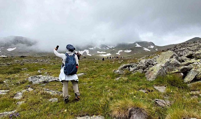 Güvenlik gerekçesiyle 3 bin 250 metre rakımlı Acembol Zirvesi'ne tırmanış iptal edilerek sporcular Acembol Gölleri'ni kuşbakışı gören bu noktadan geri dönmek zorunda kaldı.