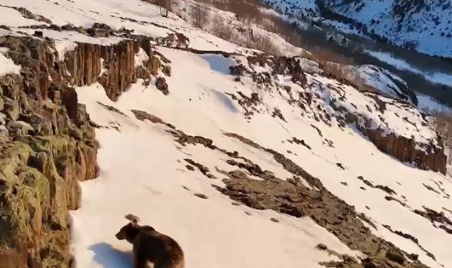 Milyonlarca yılda oluşan bazalt sütunlarının altında görüntülenen ayılar, bölgenin yaban hayatı açısından ne denli zengin olduğunu bir kez daha gözler önüne serdi.